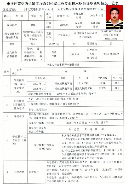 京張公司2017年度專業(yè)技術(shù)職稱申報公示(李強)
