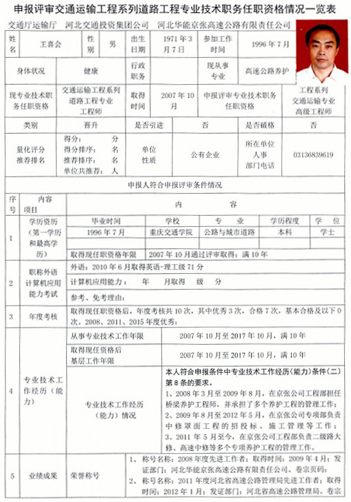 京張公司2017年度專(zhuān)業(yè)技術(shù)職稱(chēng)申報(bào)公示(王喜會(huì))