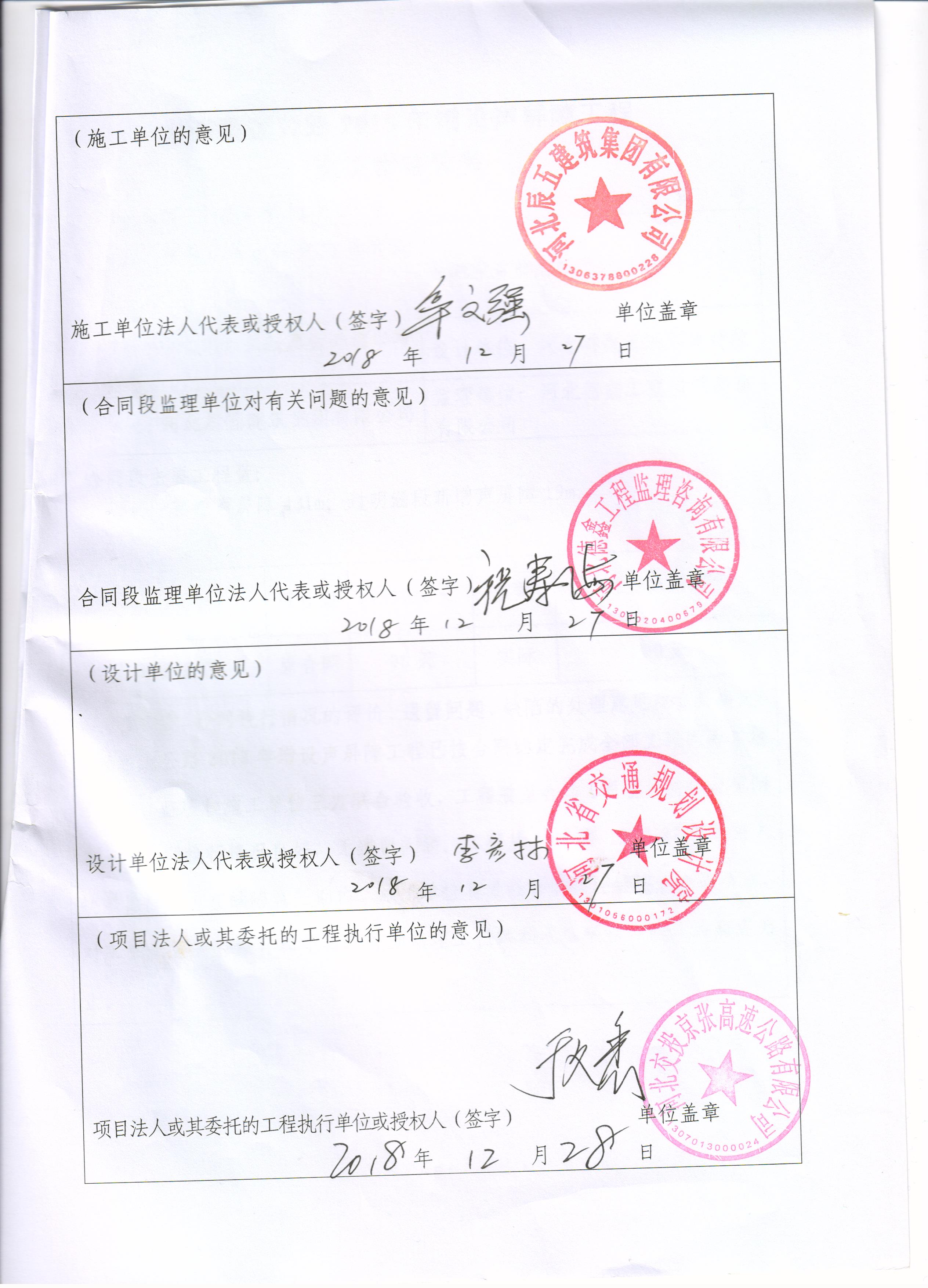 京張高速公路2018年增設(shè)聲屏障工程交工驗(yàn)收證書